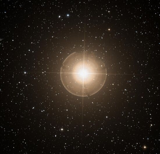 - A Hauptstern, ein Überriese der Spektralklasse K0 mit einer scheinbaren Helligkeit von +2,3 (gelblich)