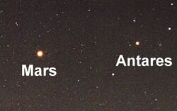 Ptolemäus schreibt[3]: Die drei Sterne im Körper des Skorpion, deren hellster und tödlichster Antares heißt, haben Mars- und im gewissen Grade Jupiternatur.