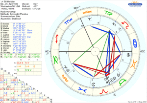 Der US-amerikanische Astrologe Bill Meridian (Geburtsname: Bill Sarubbi[1]) wurde am 25.4.1949 um 0:27 Uhr in Weehawken (New Jersey) geboren.[2]