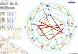 Die US-amerikanische Künstlerin und Astrologin Joan McEvers wurde am 7.2.1925 um 6:34 Uhr CST in Chicago (Illinois) geboren.