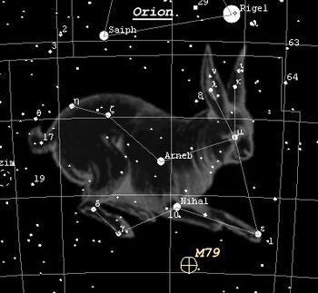 - ↑ Allgemeine Beschreibung und Mythologie übernommen von Wikipedia/Hase (Sternbild)