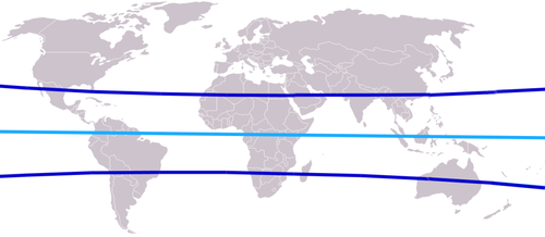 Die Wendekreise haben vom Äquator auf der Erdoberfläche je einen Abstand von 2.609 km. Der Gürtel zwischen nördlichem und südlichem Wendekreis wird auch die Tropen genannt.