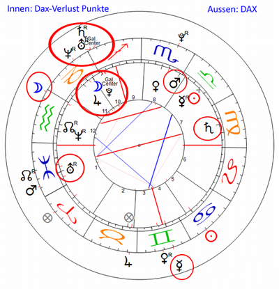 Nicht ganz – zumindest was das astrologische 1x1 des Werden und Vergehens anbelangt, reagiert ein Aktienindex wie der DAX noch auf einfachste Auslösungen.