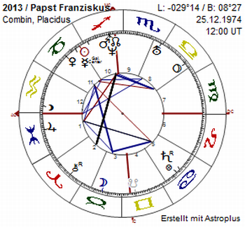 Hätte man Jorge Mario Bergoglio gekannt und sein Zeit-Combin mit 2013 vorab erstellt, wäre schnell klar geworden, dass hier vermutlich etwas besonders Bedeutsames für ihn geschieht. Solch genaue Aspekte sieht man tatsächlich selten (links). Mars, Neptun und Mondknoten finden sich engstens miteinander verwoben, nah Schütze-MC. Dazu kommt ein Fische AC auf 0 Grad mit Jupiter vorn und die Sonne genau auf Spitze 11. Schütze und Fische, die Themen der beiden Zeichen sind unter anderem die der Kirche, Glaube versus höchste Wahrheit. Darunter liegend findet sich der Mythos von Parsival und dem verletzten Fischerkönig mit der menschlich so tiefgehend fehlenden Grals-Frage: "Oheim, was wirret dir?" (Woran leidest du?). Franziskus hat mit 2013 die Herrscher von Anfang und Ende, Mars und Neptun, untrennbar verbunden und Herrn 1 in 10 bei Herrn 10 in 1 umgekehrt.