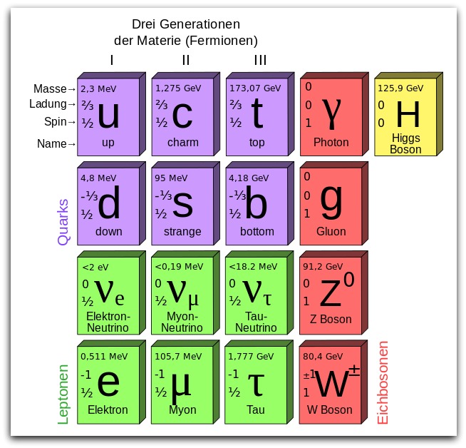 Bilder (bearbeitet): Wikimedia Commons, Grafik Quarks: Standard_Model_of_Elementary_Particles.svg: MissMJ derivative work: Polluks (Standard_Model_of_Elementary_Particles.svg) [CC-BY-3.0 (http://creativecommons.org/licenses/by/3.0)].