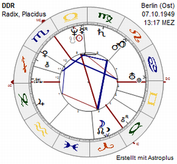 Der Jupiter der DDR sitzt dazu fabelhaft gestellt übrigens genau am DC (Öffentlichkeits-Wirksamkeit) der AFD im obigen Chart. In der Astrologie ist es ja wichtig und vor allem gut möglich, die großen Linien zu betrachten, die Vergangenheit, Gegenwart und Zukunft verknüpfen. Bei Neptun kommt so auch wieder vieles unsichtbar durch die Hintertüren: